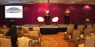 We can use LED Walls and Projectors to create a backdrop for you, with style! We can play videos, show graphics, and slideshows on these backdrops.